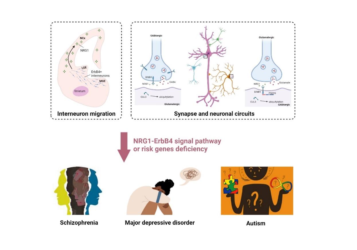由于许多精神疾病缺乏明确的病理特征,因此在病理生理机制方面人们知之甚少。随着遗传学分析的进步,人们发现了越来越多的脑疾病的易感基因。近年来,梅林实验室研究一系列易感基因,包括Erbin,TMEM108,NRG3,Caspr3和Cullin 3,揭示了它们在神经发育和神经传递中的生理功能,促进了对精神分裂症、重度抑郁症和自闭症发病机制的理解。