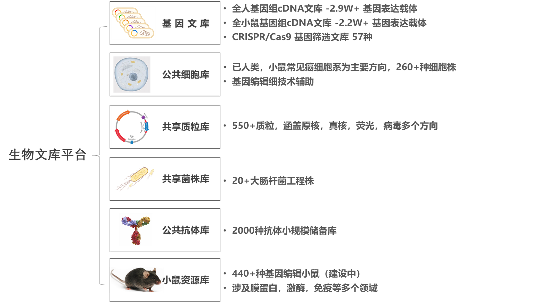 平台致力于为CIMR实验室提供全方位生物资源支持,如细胞系(肿瘤细胞、干细胞)、质粒载体(表达质粒、探针以及基因编辑载体等)、基因文库(人类/小鼠全基因组cDNA文库、CRISPR筛选文库)、公共抗体库及转基因小鼠模型库等核心资源,覆盖基因编辑、疾病机制研究等诸多领域。平台采用“点-点”服务模式,定期更生物资源库列表,支持各实验室成员通过邮件申请获取,实现全中心实验室资源快速调用与共享,并与各实验室一同合作,建立特定方向细胞库、载体库以及抗体库等,助力实验室突破资源获取瓶颈,加速科学研究。