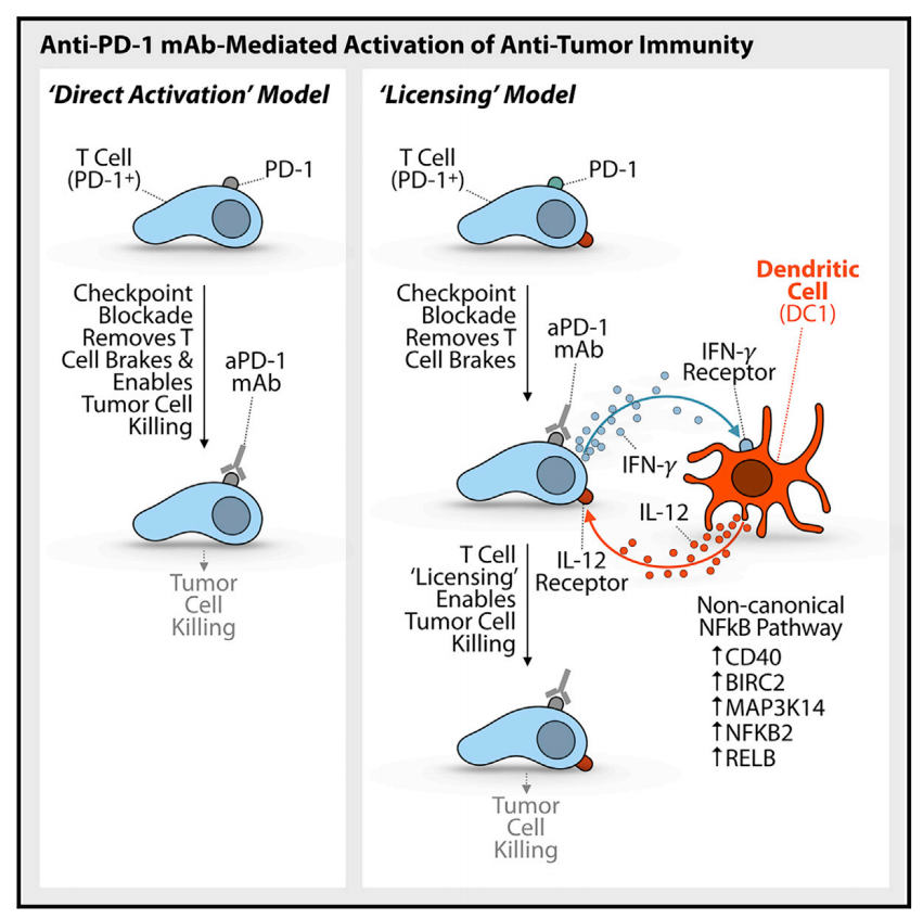 3. Garris, C.S., Arlauckas, S.P., Kohler, R.H., Trefny, M.P., Garren, S., Piot, C., Engblom, C., Pfirschke, C., Siwicki, M., Gungabeesoon, J., et al. (2018). Successful Anti-PD-1 Cancer Immunotherapy Requires T Cell Dendritic Cell Crosstalk Involving the Cytokines IFN-g and IL-12. Immunity 49, 1148–1161.e7.