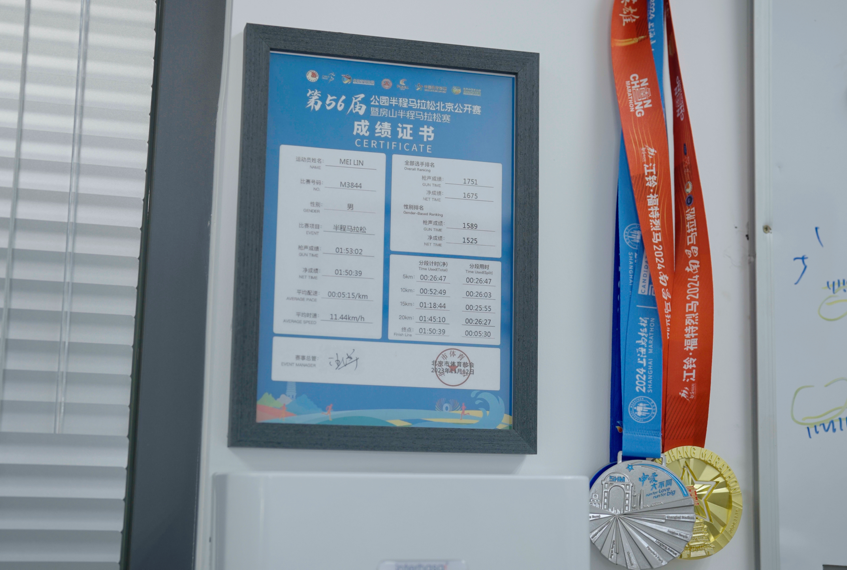 罗斌告诉《知识分子》,梅林现在2-3天跑一次步,从之前的10公里一点点训练上来,很快开始跑半马,“他曾经是我们学校(注:江西医学院)长跑记录的保持者”。回国一年多,梅林参加了好几场马拉松,还把跑步成绩张贴在实验室的墙上,在那封患者来信旁边。