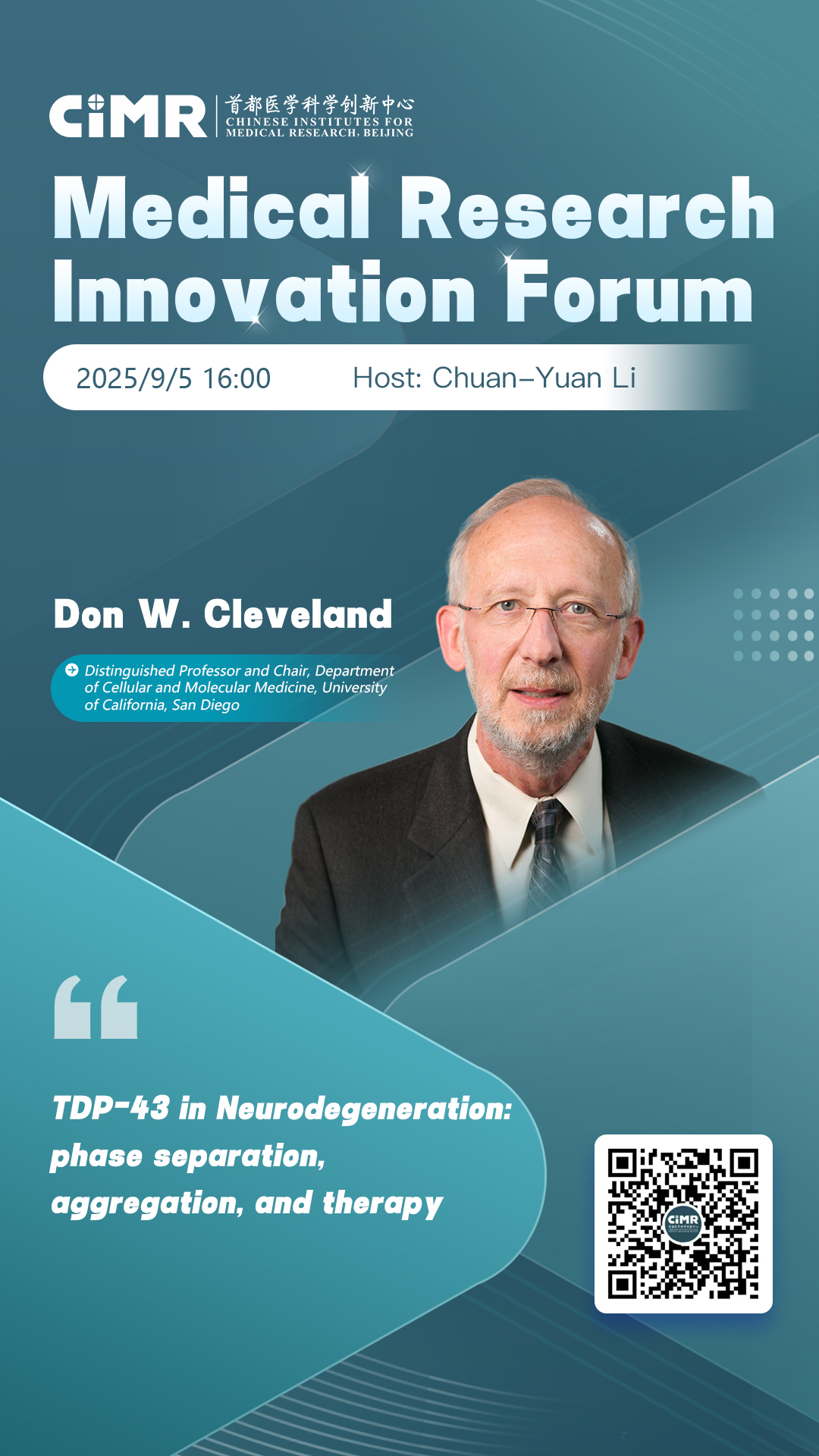 In 2050, the proportion of the world's population over 60 years old will nearly double. One of the most impactful consequences of aging is the decline of cognitive functions and associated neurodegenerative diseases. TDP-43, an essential nuclear RNA binding protein, is found to mis-localize to cytoplasm and form inclusions in almost every age-dependent neurodegenerative disease, including > 90% of instances of amyotrophic lateral sclerosis, > 40% of frontal temporal dementia and Alzheimer’s disease patients. My lab has long investigated the disease mechanisms of TDP-43 proteinopathy. Our work has revealed TDP-43's essential functions in splicing and regulatory pathways that underlie the pathology's formation.