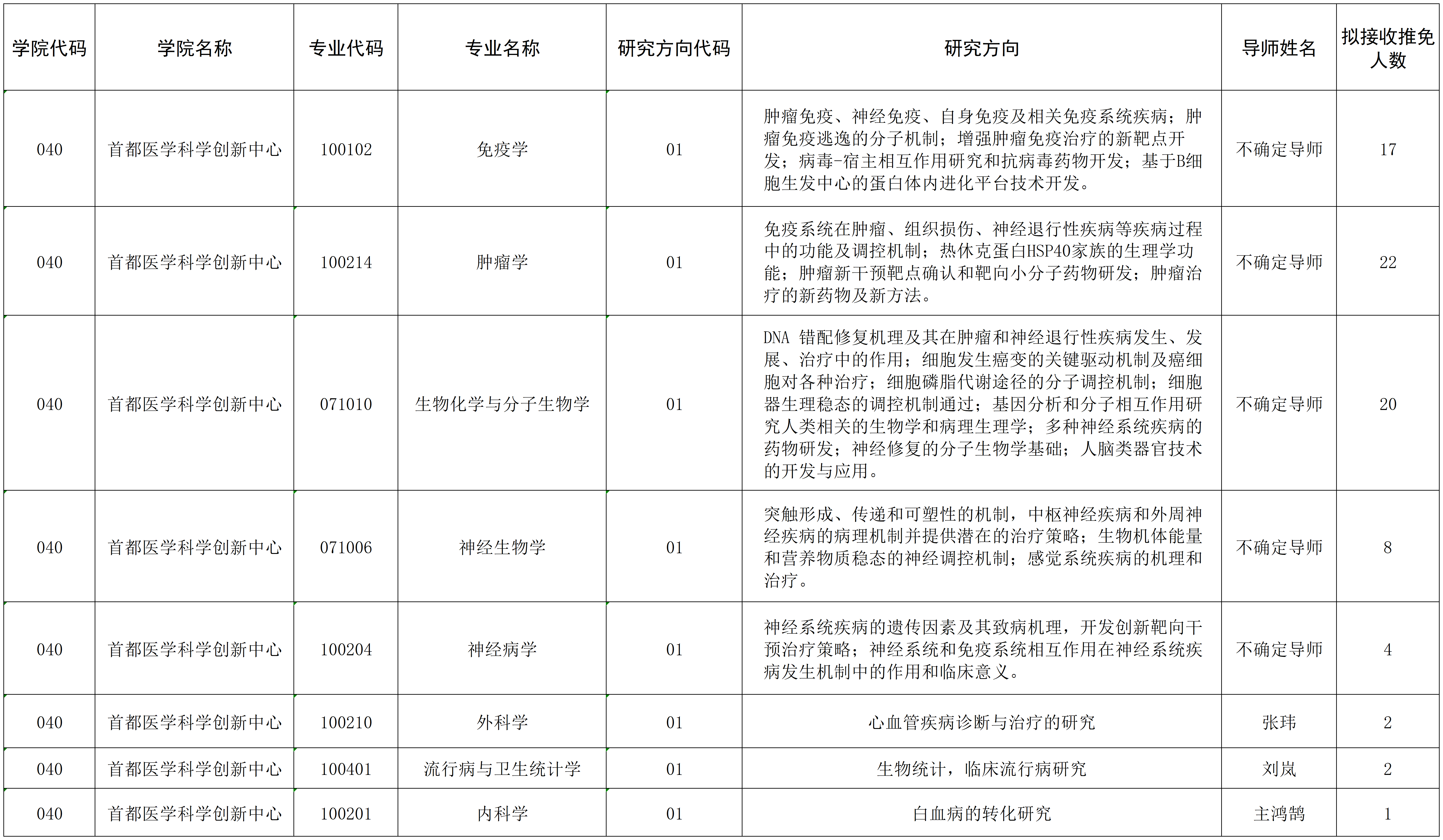 附:首都医学科学创新中心2026年本科起点直接攻读博士学位研究生招生目录