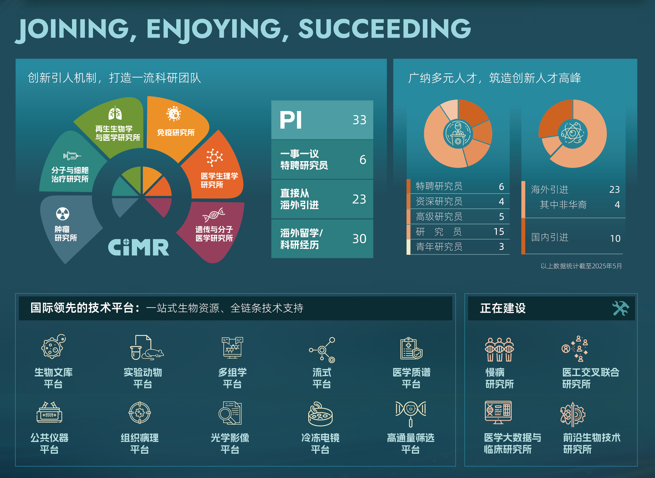 今天,33位来自全球的顶尖科学家(包括4位非华裔PI)已经加入,6个研究所投入运转,10个国际领先的技术平台为科研创新提供强力支撑,4个新研究所正在筹建——而这一切,才刚刚开始。