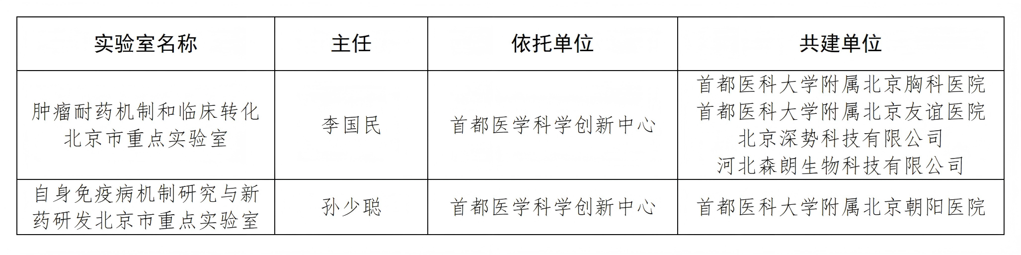 近日,北京市科学技术委员会、中关村科技园区管理委员会公布了2025年北京市重点实验室拟认定名单。首都医学科学创新中心牵头申报的“肿瘤耐药机制和临床转化北京市重点实验室”与“自身免疫病机制研究与新药研发北京市重点实验室”均通过了认定公示。