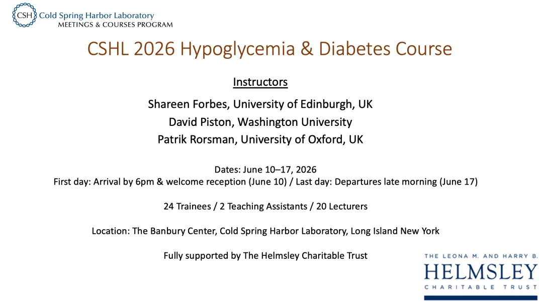课程采用正式授课与非正式研讨相结合的形式,涵盖概述、患者视角、临床检测、动物模型与生理学、细胞机制、实验设计六大核心主题,重点探讨糖尿病进程中胰高血糖素失调的作用机制,以及该反调节激素作为新型治疗靶点的应用潜力,面向全球医学生、研究生、博士后及高校教员开放申请。