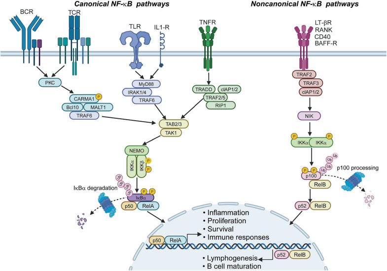 Fig. 1 Canonical and noncanonical NF-κB signaling pathways.